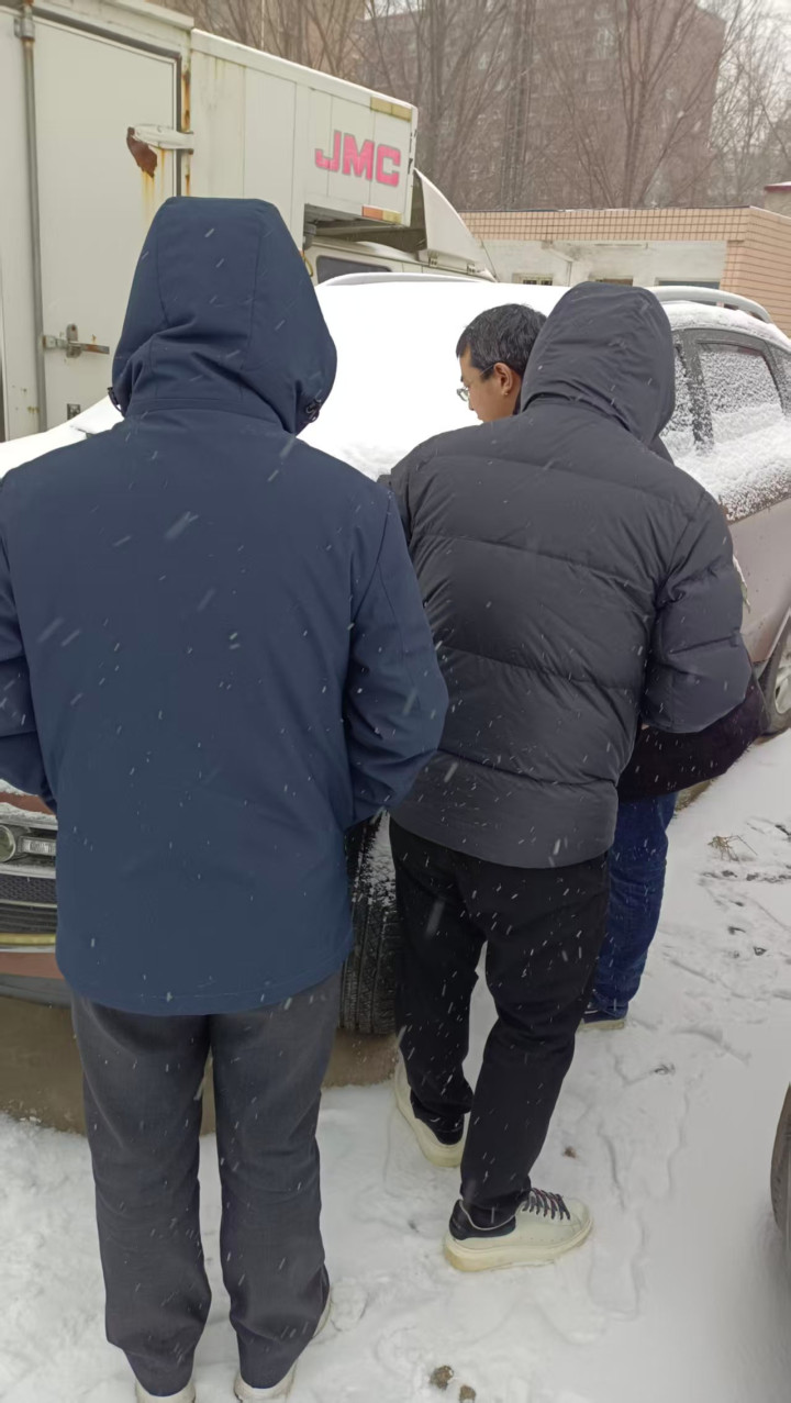 2025年9月,唐林和同事到副教授工作的高校调查取证。受访者供图